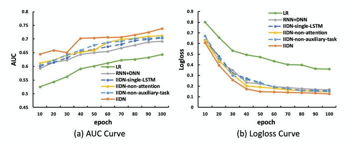 可以看到IIDN达到最高的AUC和最低的Logloss,这证明了IIDN的合理性。