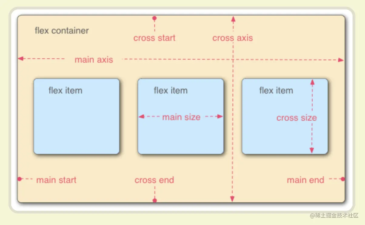 flex布局的容器内有两的轴:main axis 和 cross axis主轴和交叉轴