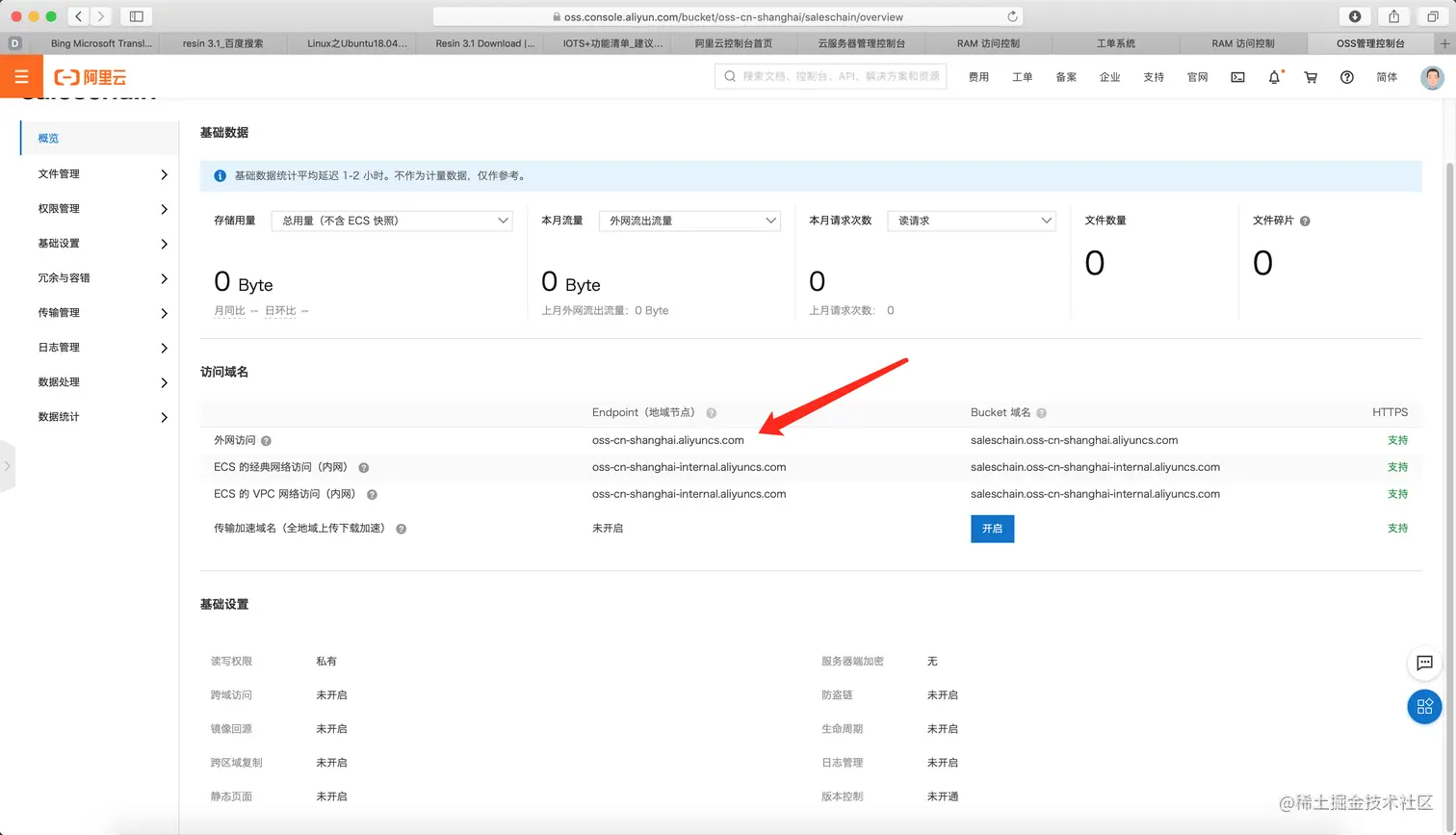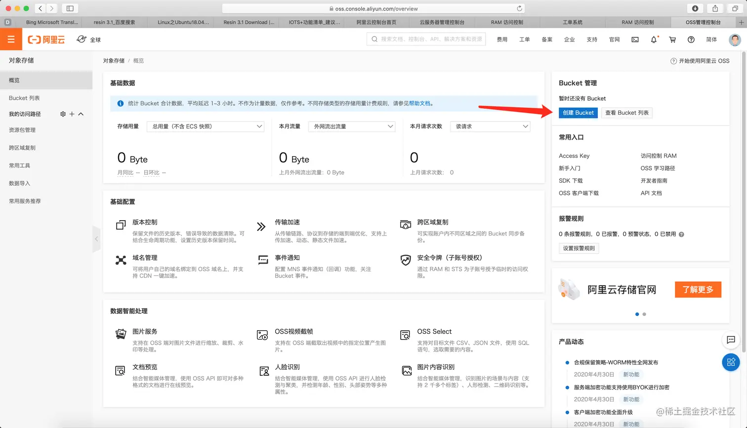 从阿里云控制台,进入 OSS 服务管理界面