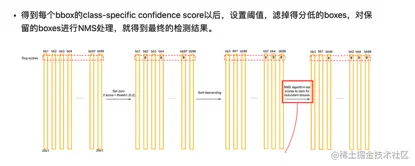 20*(7*7*2)的矩阵中,每一行是同一个类别,需要做nms(先按score排序,再按阈值剔除一些bbox),再按列找,对每个bbox找到score最高的类别,作为他预测的物体类别)
