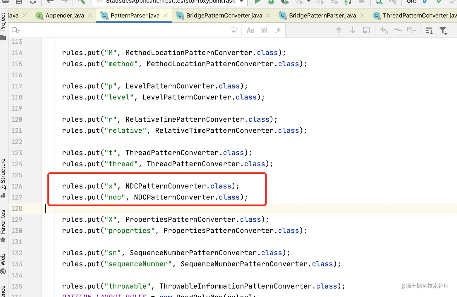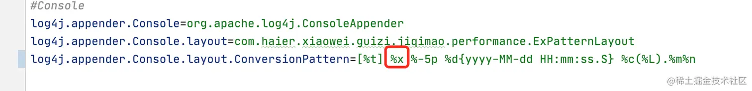 在方法结束之前我们需要删除下NDC,如果不删除的话,一直使用这个ndc,另外我们在log4j.properties 中增加对 %x的模式匹配。