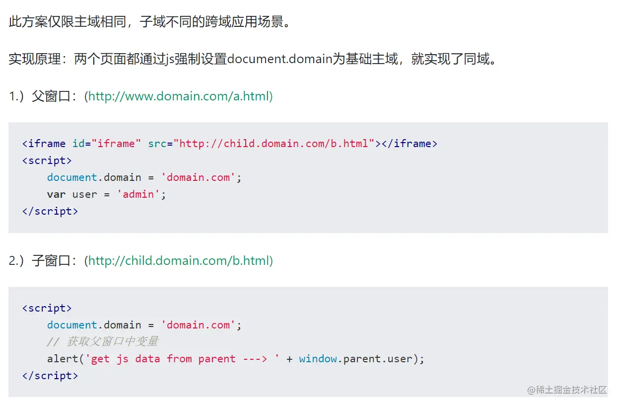 情景:两个页面的主域要相同