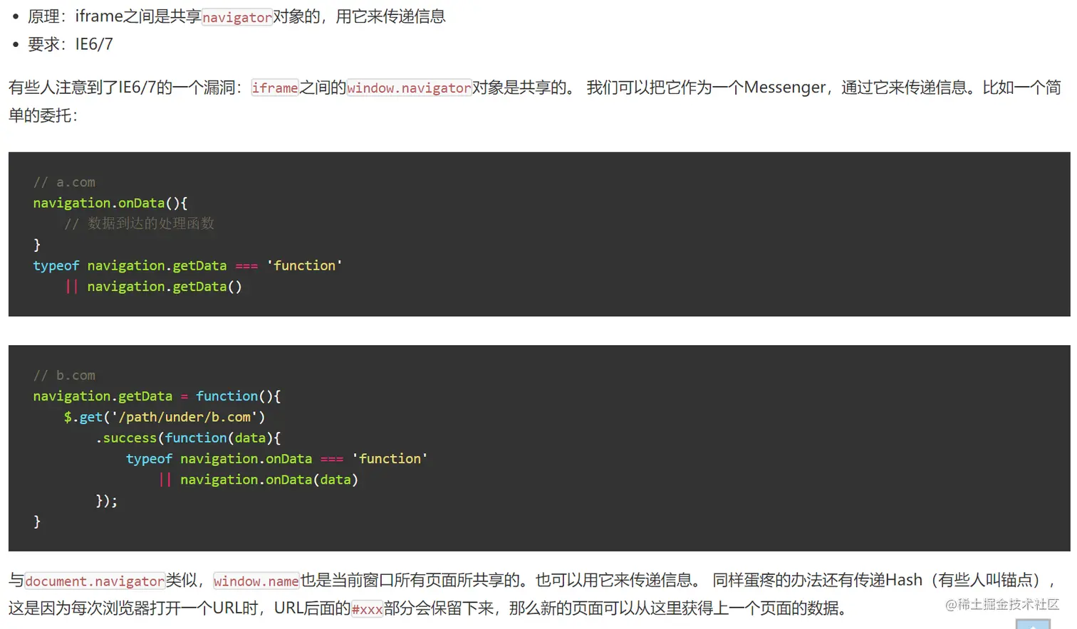 iframe.src = 'about:blank' //设置为和父页面同源。页面发生跳转,但是window.name依然存在