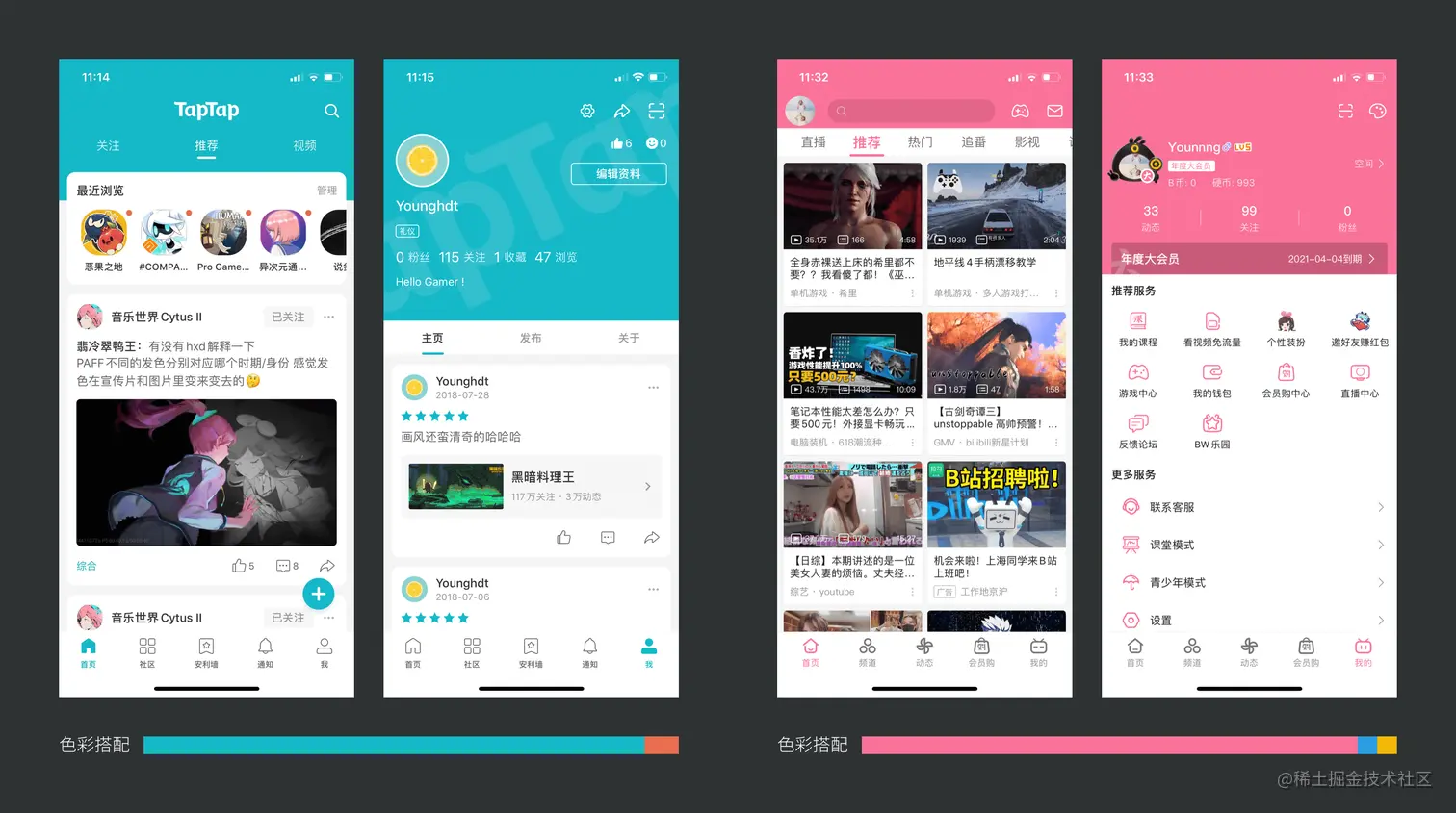 这是多数主流应用的趋势,降低主色占比,留出更多的空间给内容模块的展示上,突出自身带有的服务和功能。