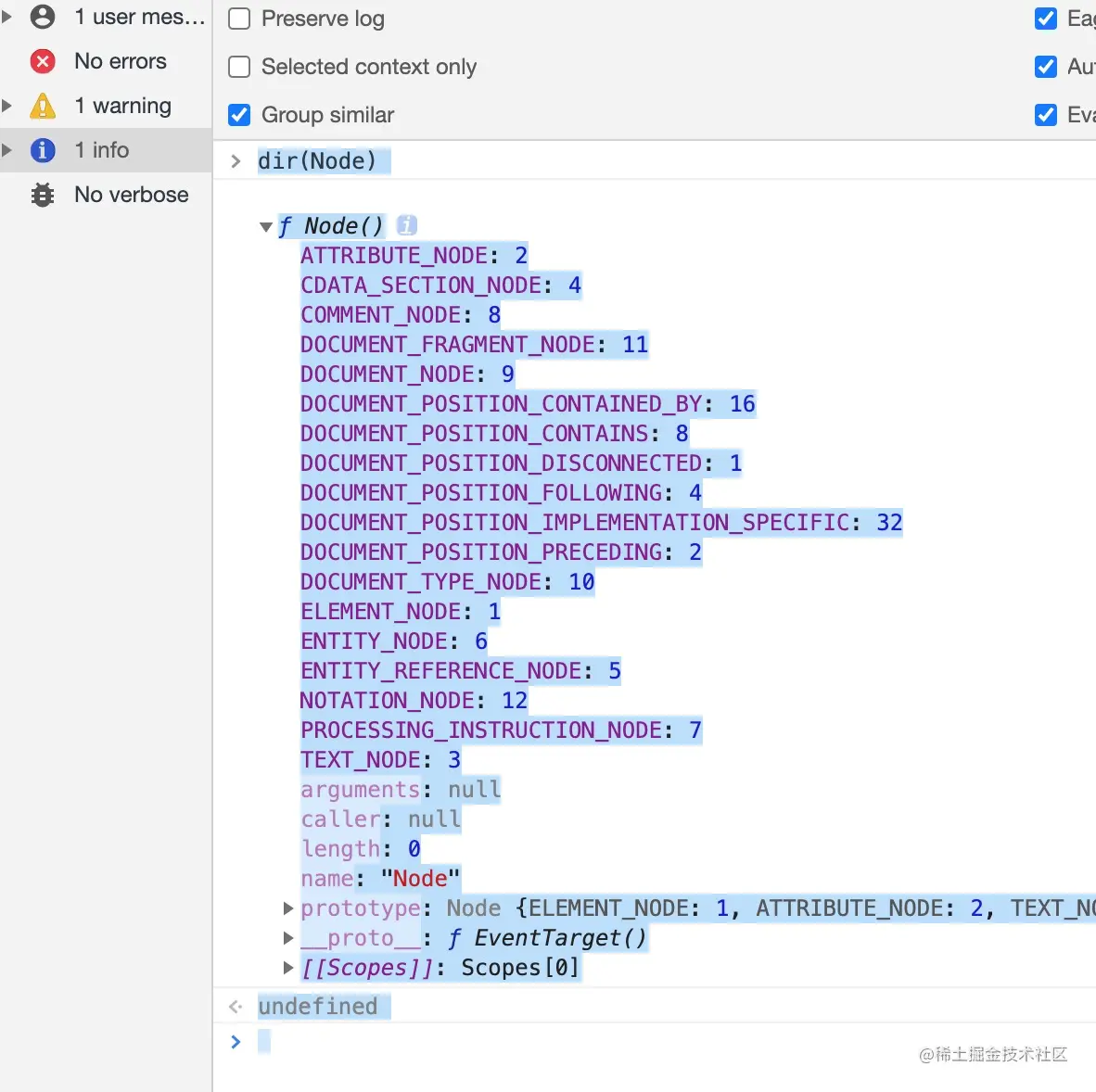 这时我们需要循环, Node这个对象中为我们预设了一些常量,可以通过dir(Node)查看
