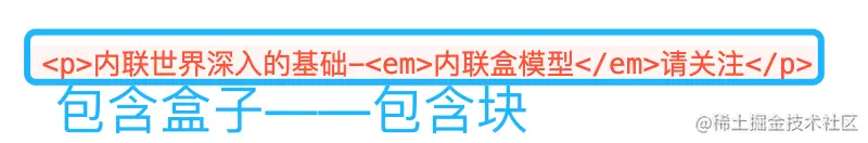 4)包含盒子(containing box)——包含块。图例中<p>标签就是一个“包含盒子”(实线框标注),此盒子由一行一行的“行框盒子”组成。例如:
