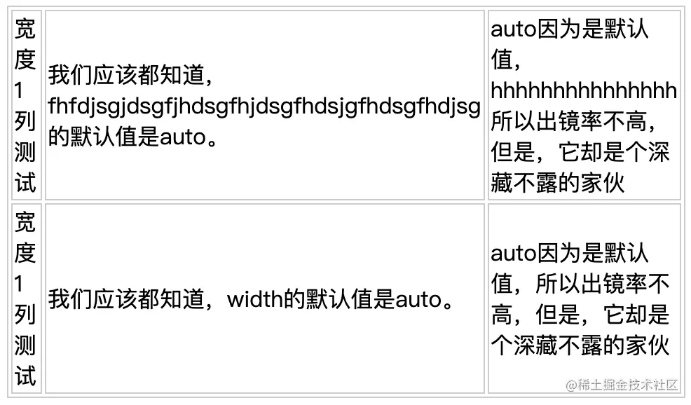 - 收缩到最小。这个最容易出现在table-layout为auto的表格中,如: