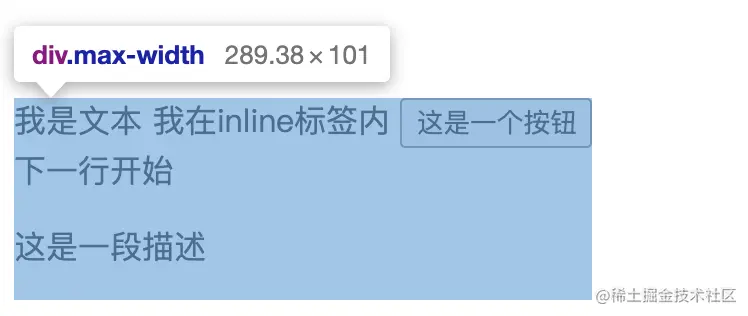 - 超出容器限制。除非有明确的width相关设置,否则上面3种情况尺寸都不会主动超过父级容器宽度的,但是存在一些特殊情况。例如,内容很长的连续的英文和数字,或者内联元素被设置了white-space:nowrap。
