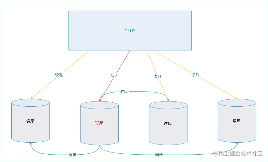 其中一个是主库,负责写入数据,我们称之为:写库;其它都是从库,负责读取数据,我们称之为:读库;