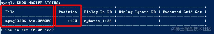 需要记录下Position值,需要在从库中设置同步起始值。