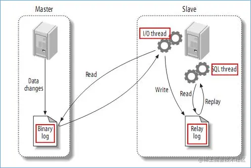 - slave将master的binary logevents拷贝到它的中继日志(relay log)