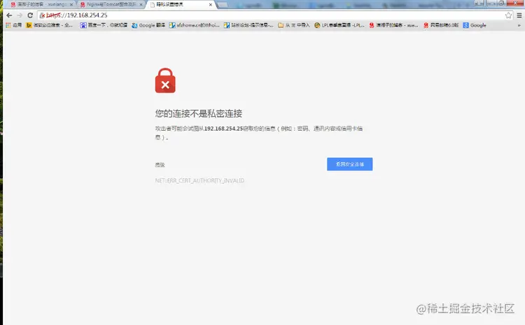 出于安全访问考虑,采用的CA是本机Openssl自签名生成的,因此无法通过互联网工信Root CA验证,所以会出现该网站不受信任或安全证书无效的提示,直接跳过,直接访问即可!