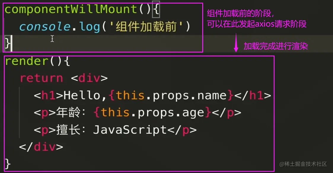 didMount和didUpdate里面执行,在组件加载和数据更新时会执行: