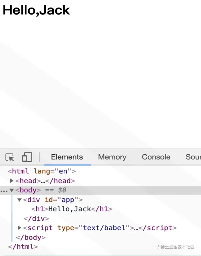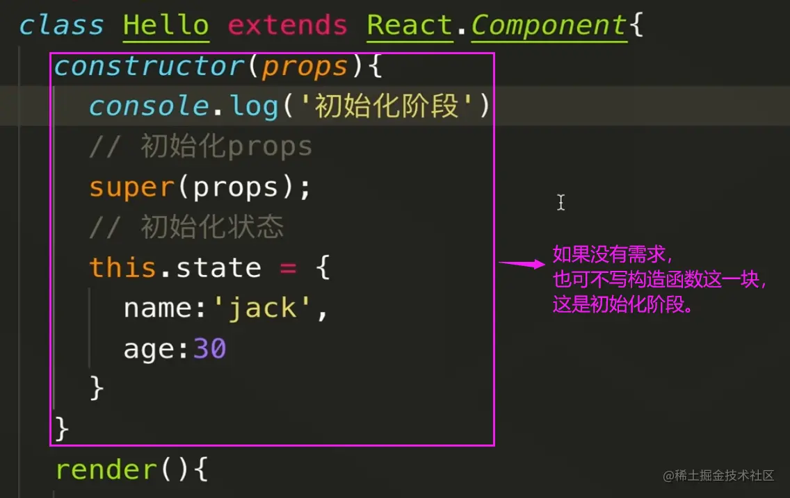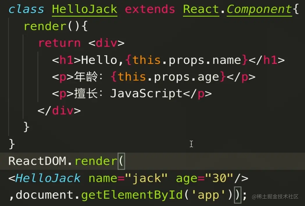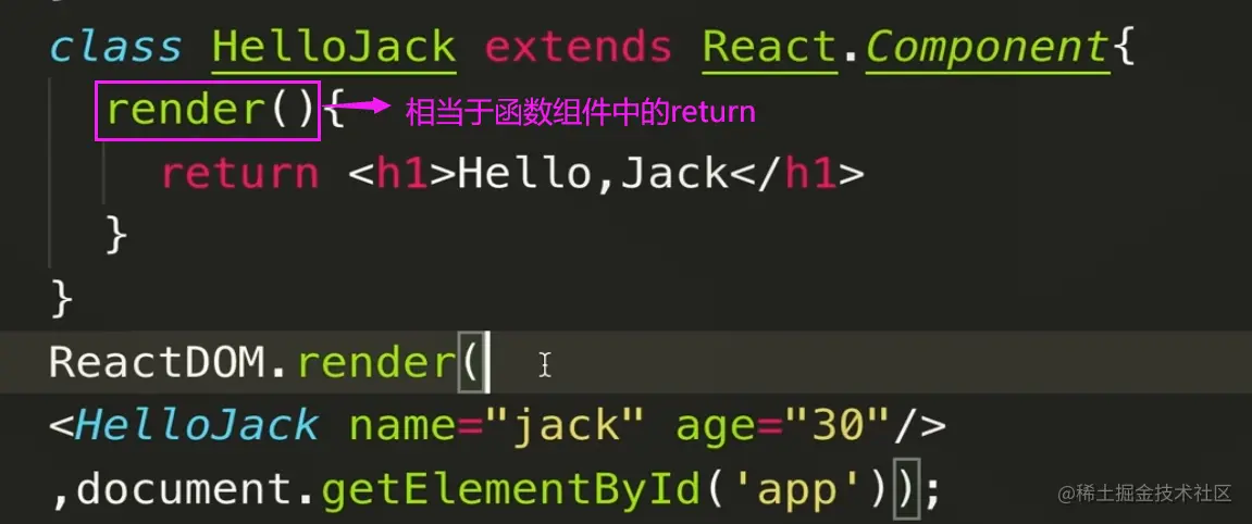 这里的HelloJack从React.Component中继承了许多特性,包括生命周期、构造函数等。