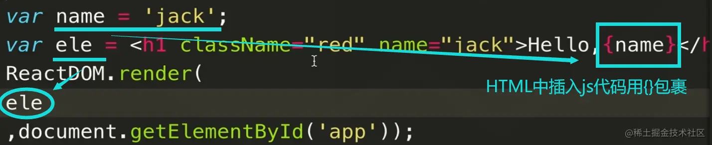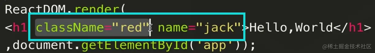 注意,上图代码中的className是标准写法,不能用class,和ES6中的class关键字区别开来!