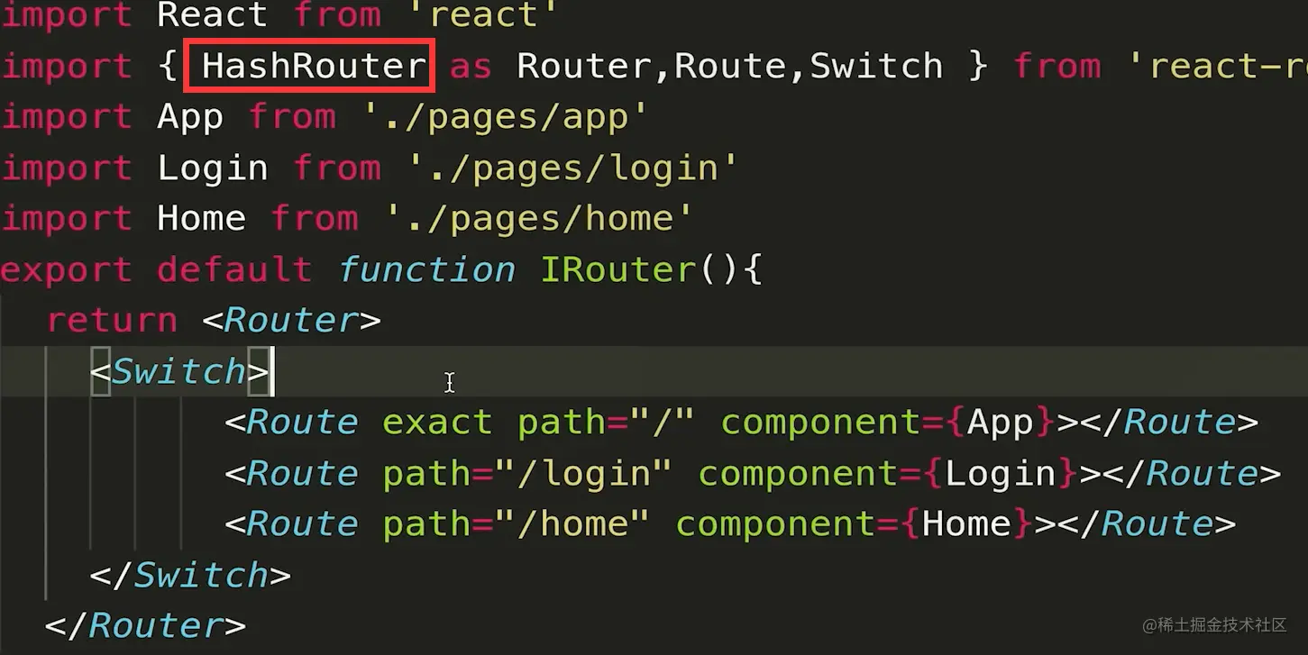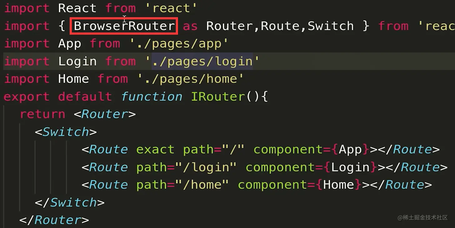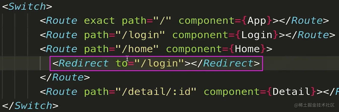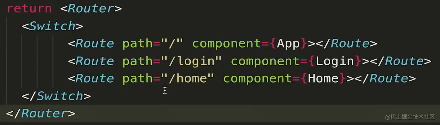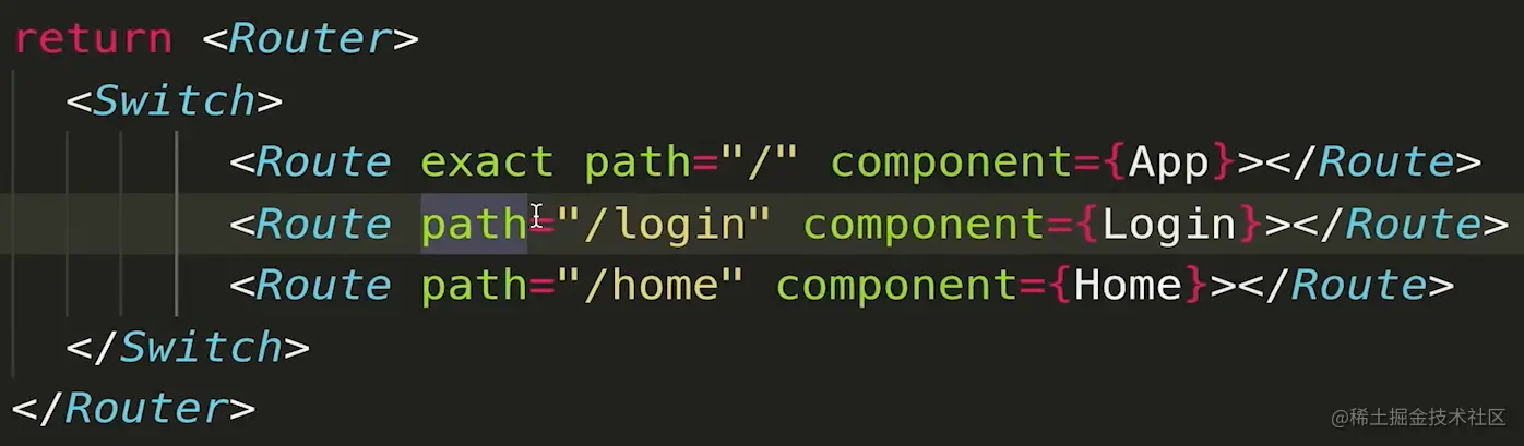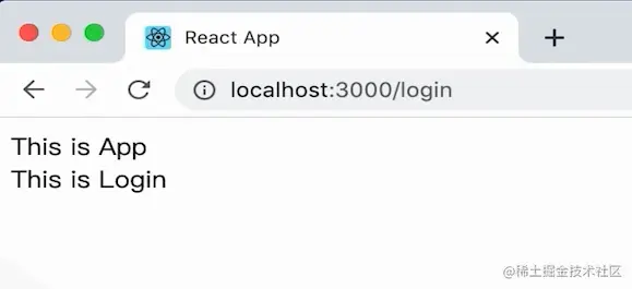 默认的情况下,这个路由组件都会进行匹配,从上到下挨个匹配,发现‘/login’包括‘/’,就会第一个路由给匹配出来。因此会加载App组件,再去加载Login组件。当我们一旦加了switch之后,就只会匹配第一个,当第一个匹配到就会自动终止。我们再来看一下: