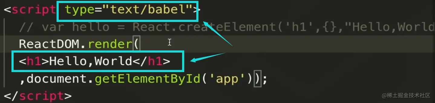 本质上而言,js当中的h1标签是react的语法糖。所以是我们需要用Babel来解析。