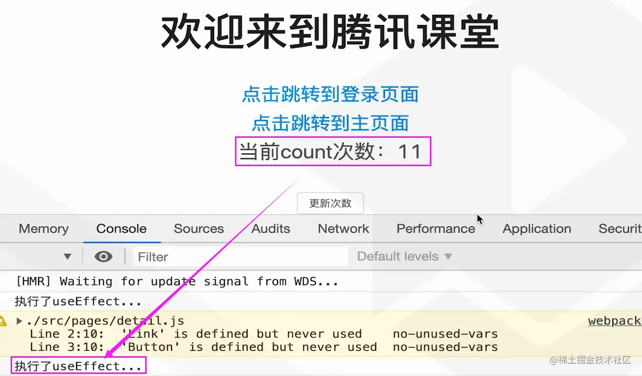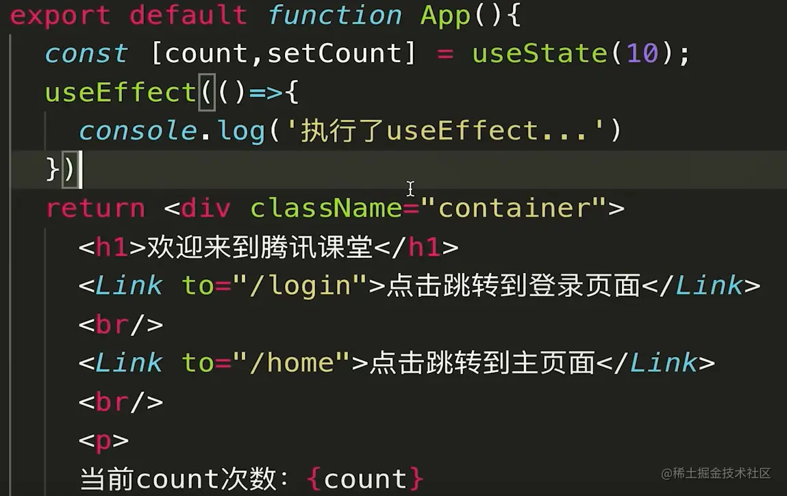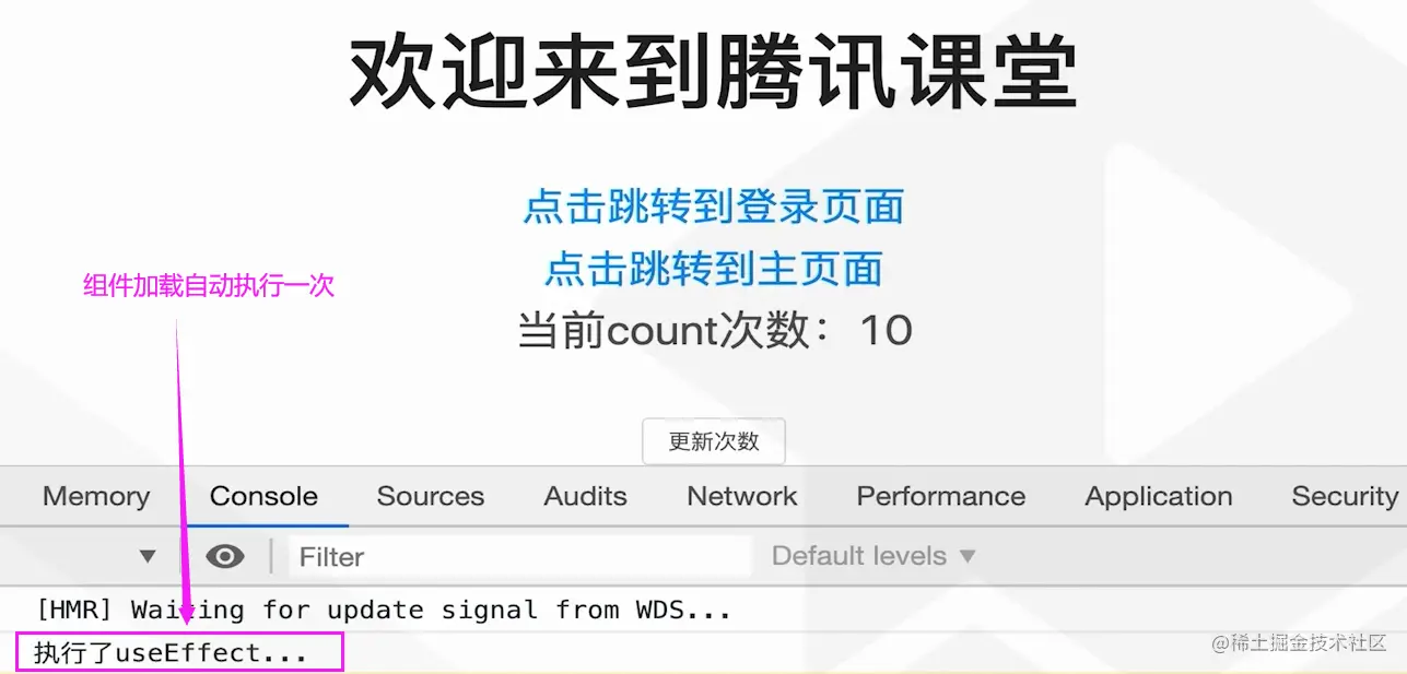 当我们传入第二个参数——一个空数组的时候,他就只会执行一次了,因为这个是订阅型的,我们传入的参数有变化时useEffect才会执行,传入空数组就不会影响。