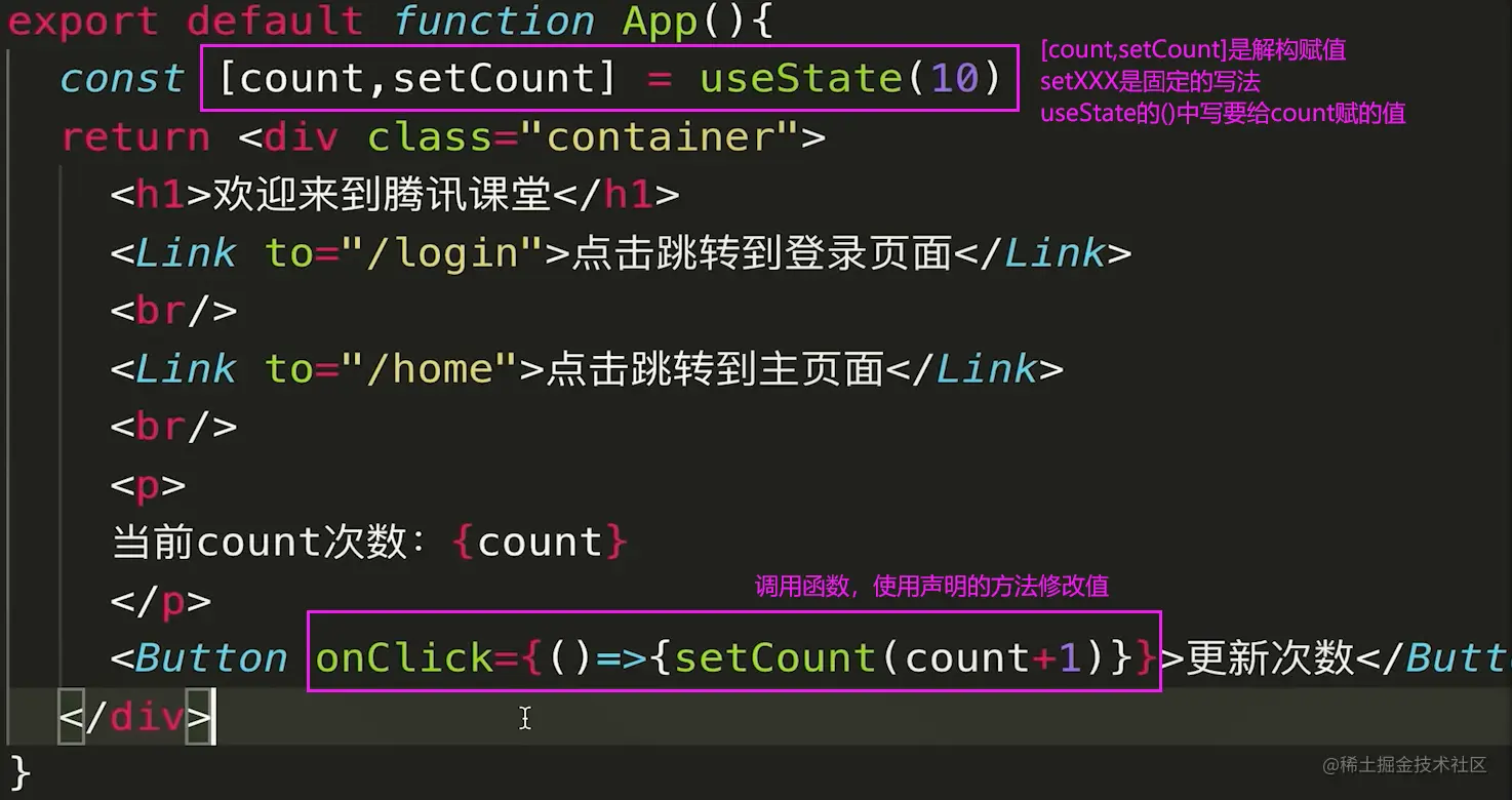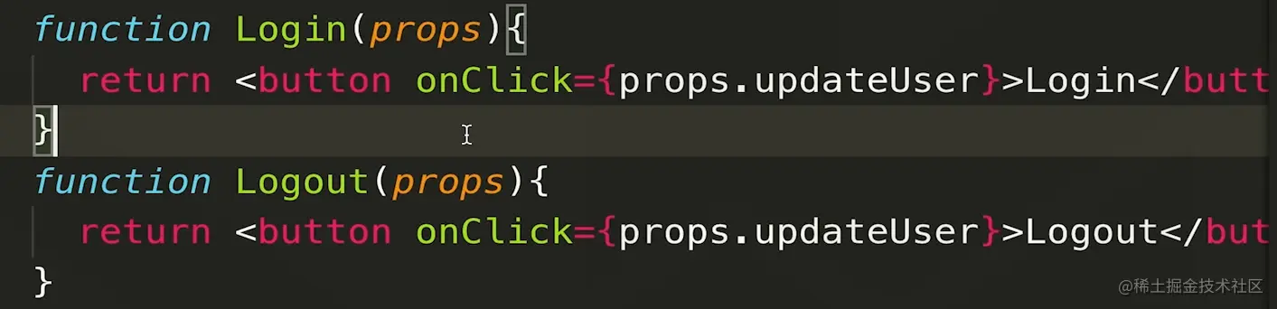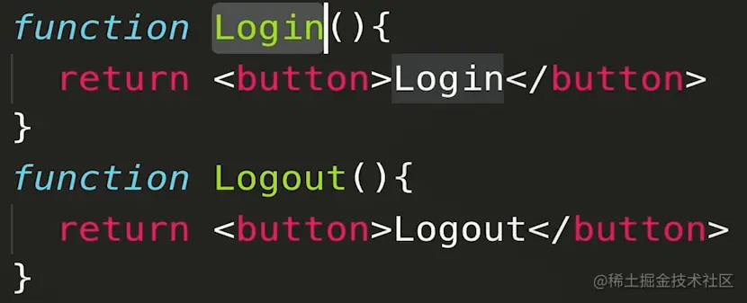 接下来,我们先定义两个组件:登录、登出,由于我们暂时不需要太复杂的生命周期函数,所以我们使用函数组件: