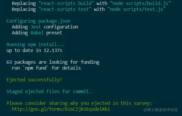 npm run eject暴露webpack配置项是不可逆的,我们这里暴露演示一下:
