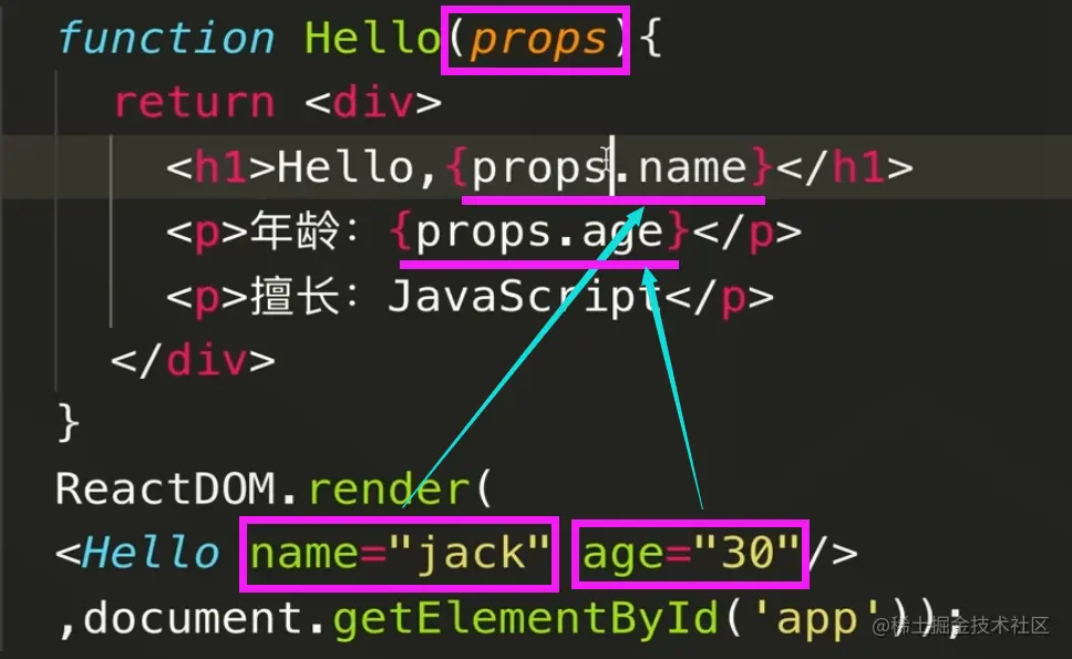 关于class组件的传参,我们可以使用this,因为它是有状态的。而这里的this指向的是React.Component的实例HelloJack。