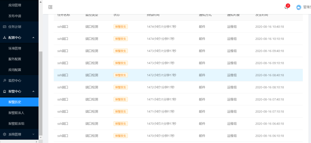 报警中心: 支持短信、邮件、钉钉、微信等报警方式