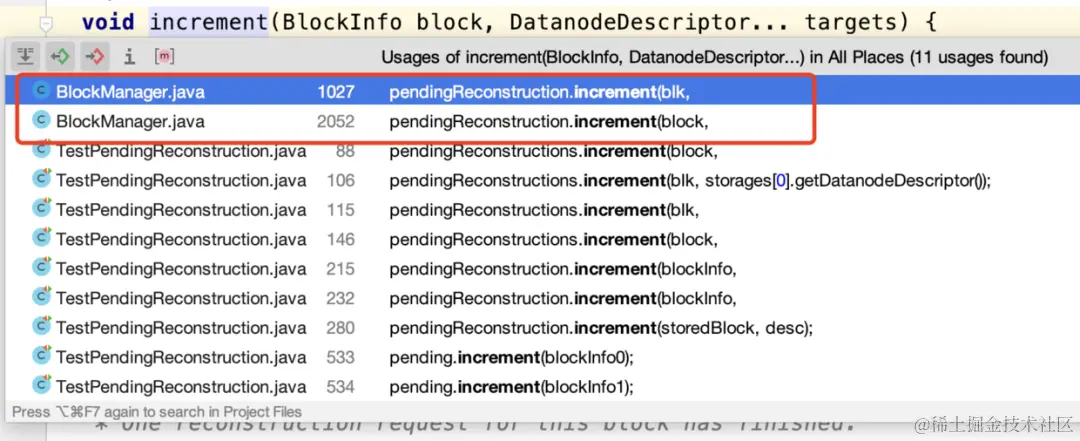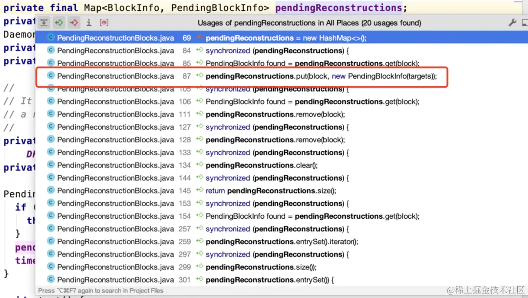 首先看pendingReconstructions,因为是个Map结构,所以我们看看谁调用了put方法。