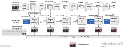 不同特征图对应不同分类器,且采用卷积输出4个位置偏移和21个类别置信度。