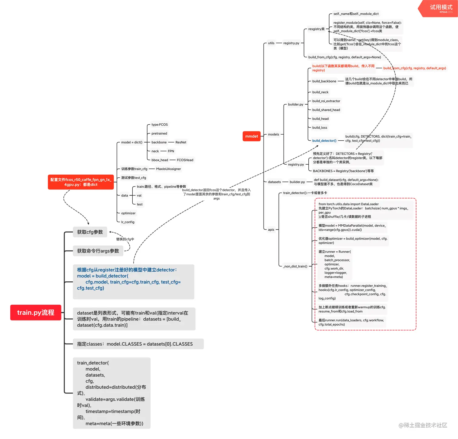 mmdetection中训练流程 on_a_roll 2020-08-21 347 阅读1分钟 以fcos为例,整理了mmdetection开源代码中的训练流程,主要是文件结构之间的关系,方便学习~ 日后有空再补上关键部分的代码