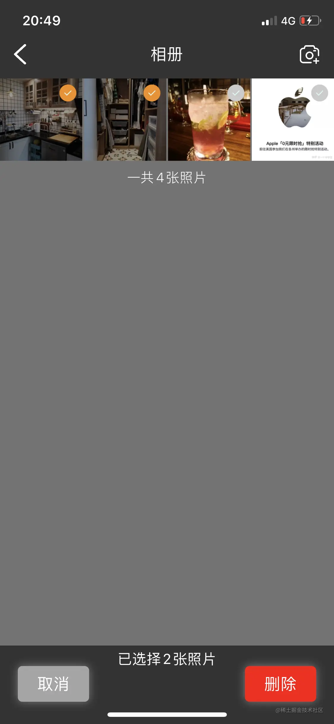 长按可进入照片编辑照片模式,可以批量对照片进行删除。
