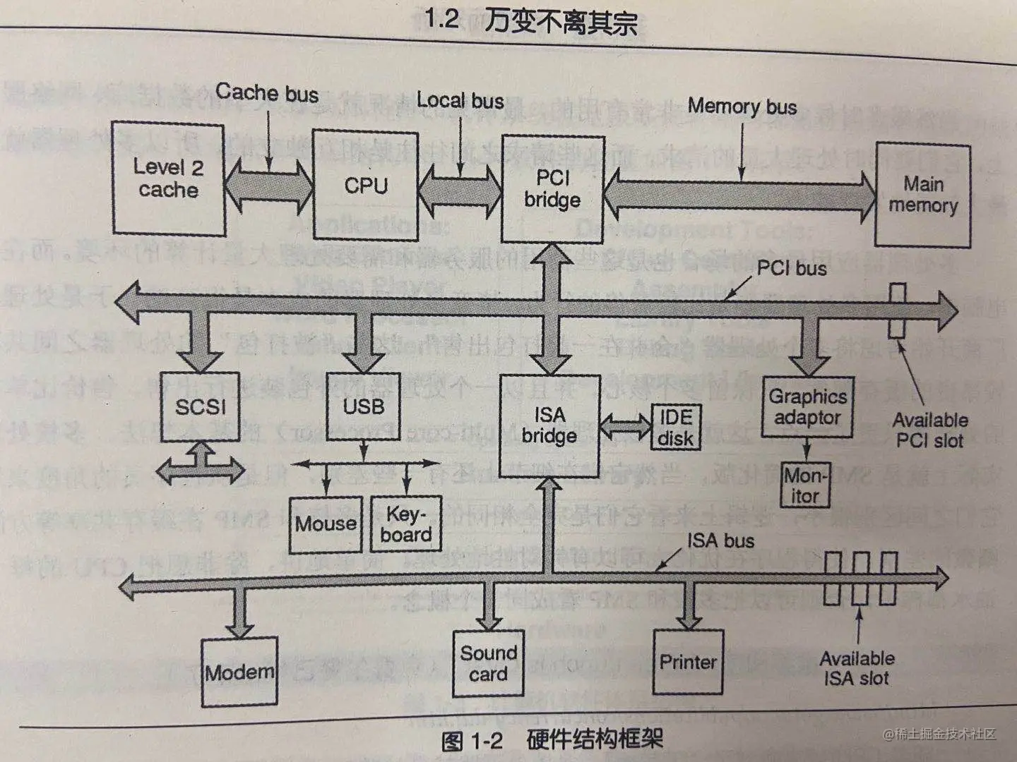 计算机硬件结构主要就是CPU、内存、IO设备之间的通信结构。通过使用南北桥芯片架构,北桥芯片协调高速的CPU、内存、高速图形设备以及通过南桥芯片连接慢速的外接设备。