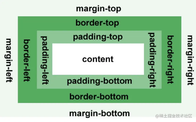 把元素叫做盒子,设置对应的样式分别为:盒子的边框(border)、盒子内的内容和边框之间的间(padding)、盒子与盒子之间的间距(margin)