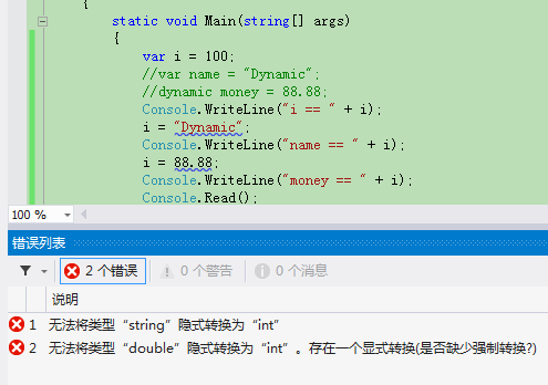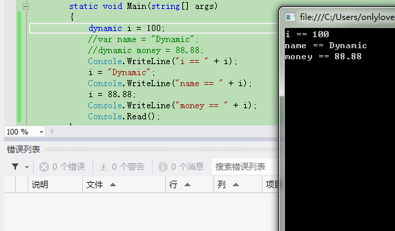 在var修饰的变量中,不管你给什么值,都会自动编译时确定其类型,不用考虑变量是int、double、string类型,那么dynamic呢?