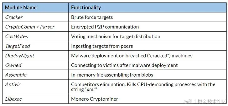 之前也有过用 GoLang 语言开发的僵尸网络,比如 Gandalf 和 GoBrut。但 FritzFrog 与 Rakos 更加相似,通过暴力破解 SSH 登陆凭证来入侵目标系统。