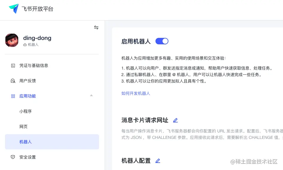 恭喜你!5分钟内就完成了一款飞书机器人开发