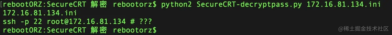 python2 SecureCRT-decryptpass.py 172.16.81.134.ini