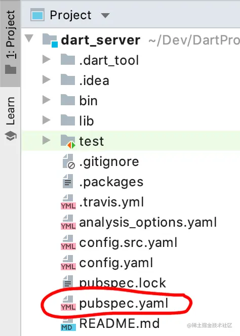 在你的IDE中,打开dart_server项目根部的pubspec.yaml文件。文件结构与Flutter如此相似,这已经让人感觉很熟悉了,不是吗?