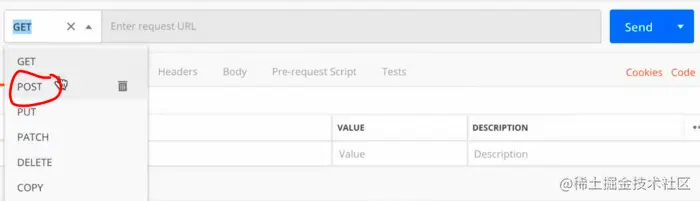 打开Postman。从下拉菜单中选择POST,而不是GET。