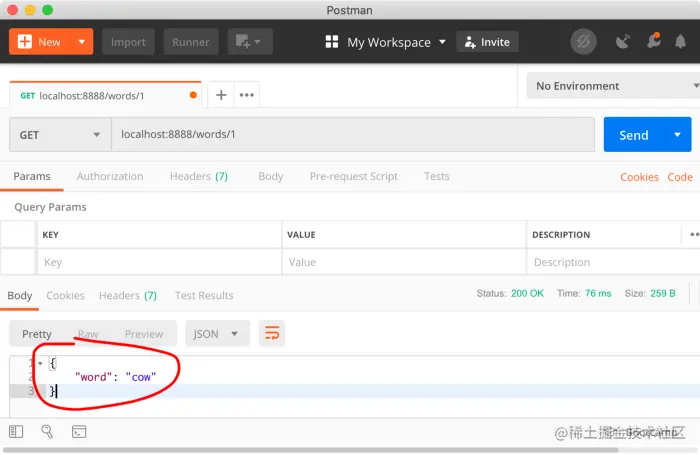 在这个系列中,你将构建一个字典应用程序,所以你将定义一个路径为/words的路由,而不是/example。