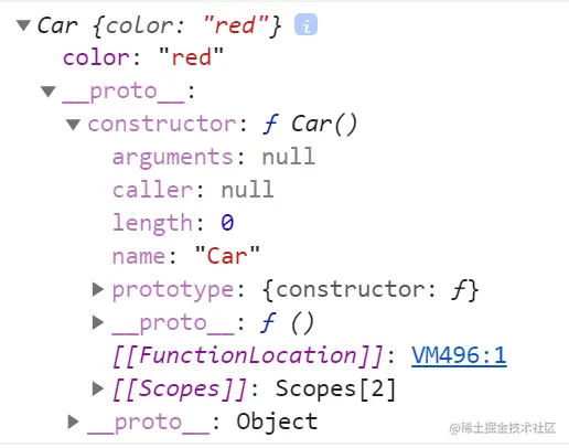 - 创建类(例如:Car)的实例对象(redCar)【实例._ proto__ = 类.prototype】;