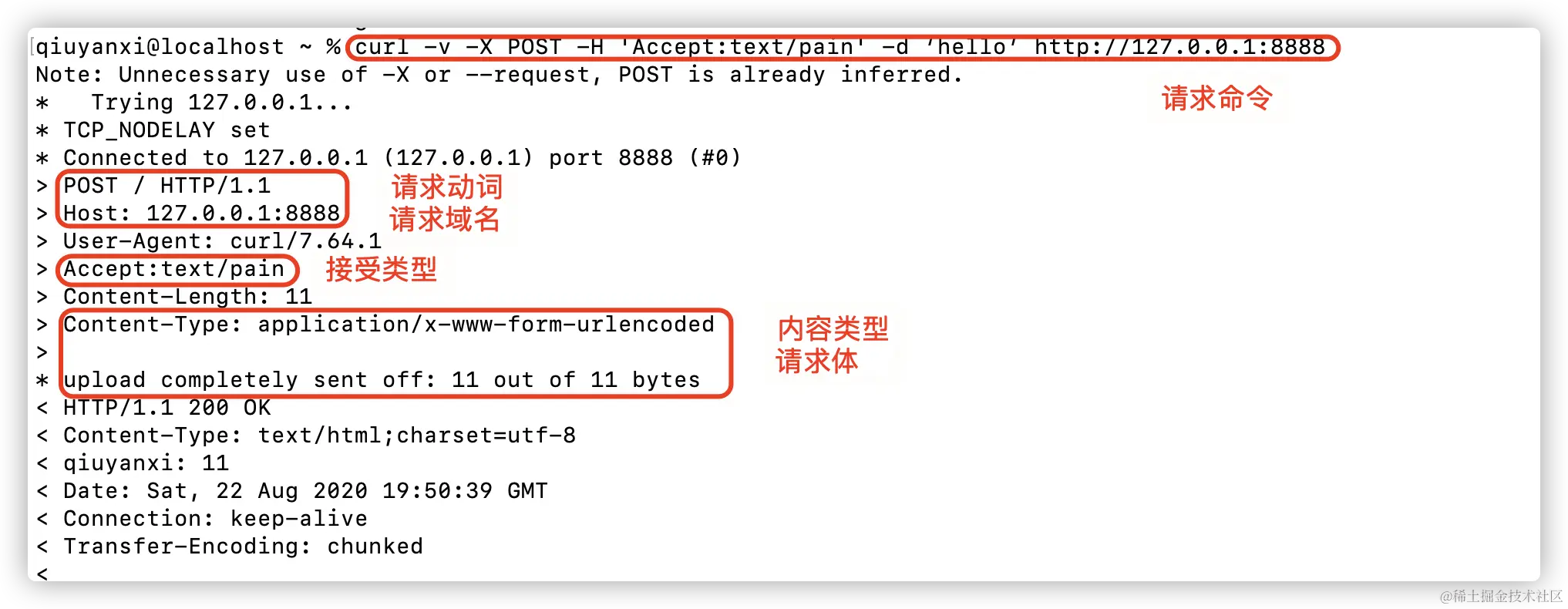 设置请求的类型为纯文本:curl -v -X POST -H 'Content-Type:text/plains;charset=utf-8' http://127.0.0.1:8888