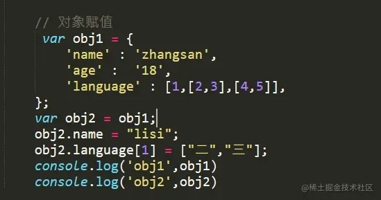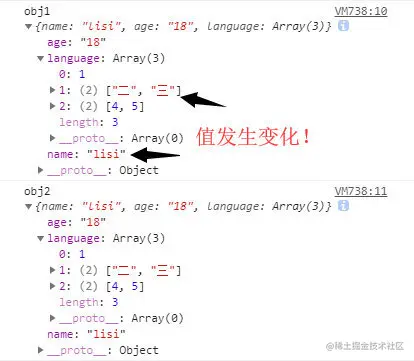 栗子二中obj1的language是一个对象属性,因此拷贝的只是对象的地址,所以拷贝原件的这个对象属性变了,被拷贝的也会跟着变。