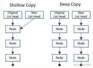 浅拷贝只复制指向某个对象的指针,而不复制对象本身,新旧对象还是共享同一块内存。但深拷贝会另外创造一个一模一样的对象,新对象跟原对象不共享内存,修改新对象不会改到原对象。