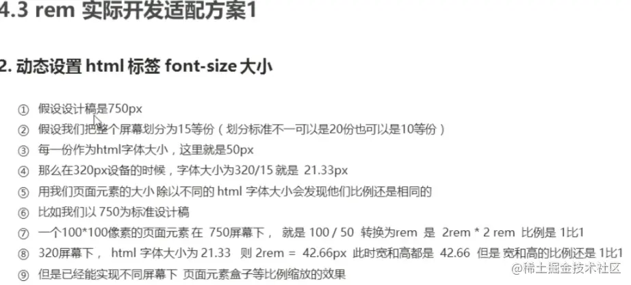 - 计算html的font-size:屏幕宽度/划分等份。因为屏幕宽度是动态的,所以html的font-size也是动态的