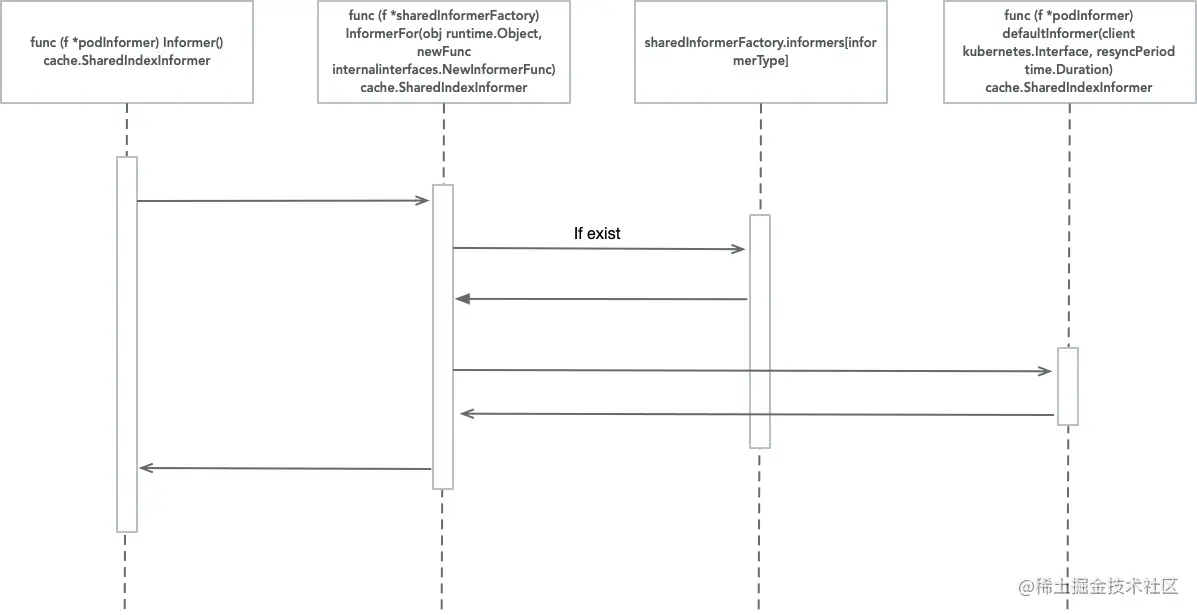 获取pod informer的逻辑很简单先去map中查找,没有就进行创建。在