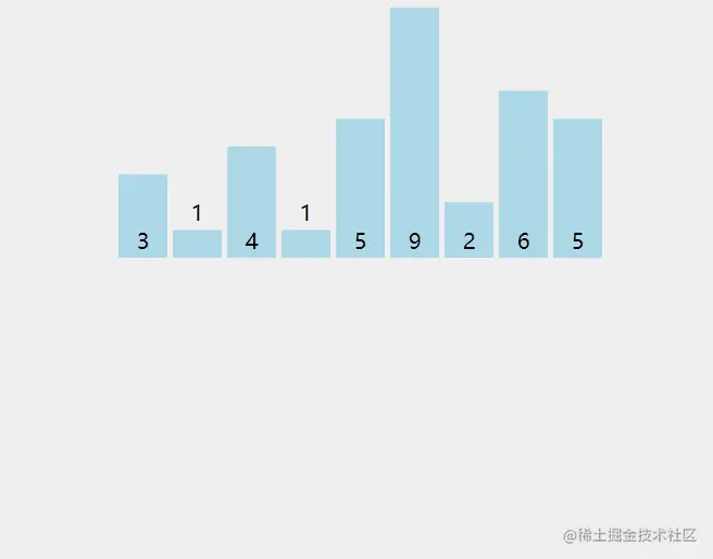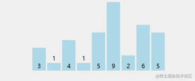 示例未排序数组 : [3,1,4,1,5,9,2,6,5]