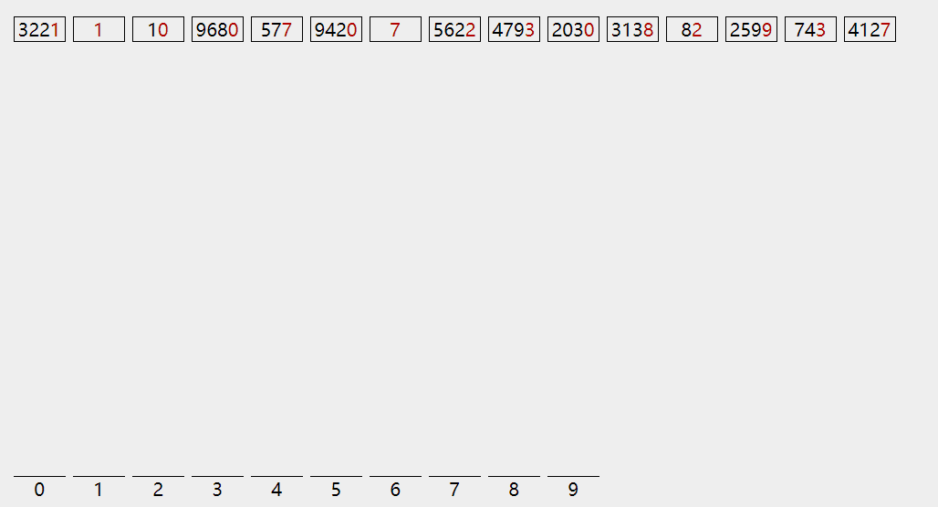 这里就派上用场了:基数排序由低位到高位,每一轮借助桶来完成一个位置的排序
