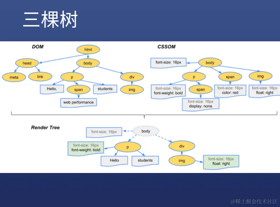 - 将两棵树合并成一颗渲染树(render tree)
