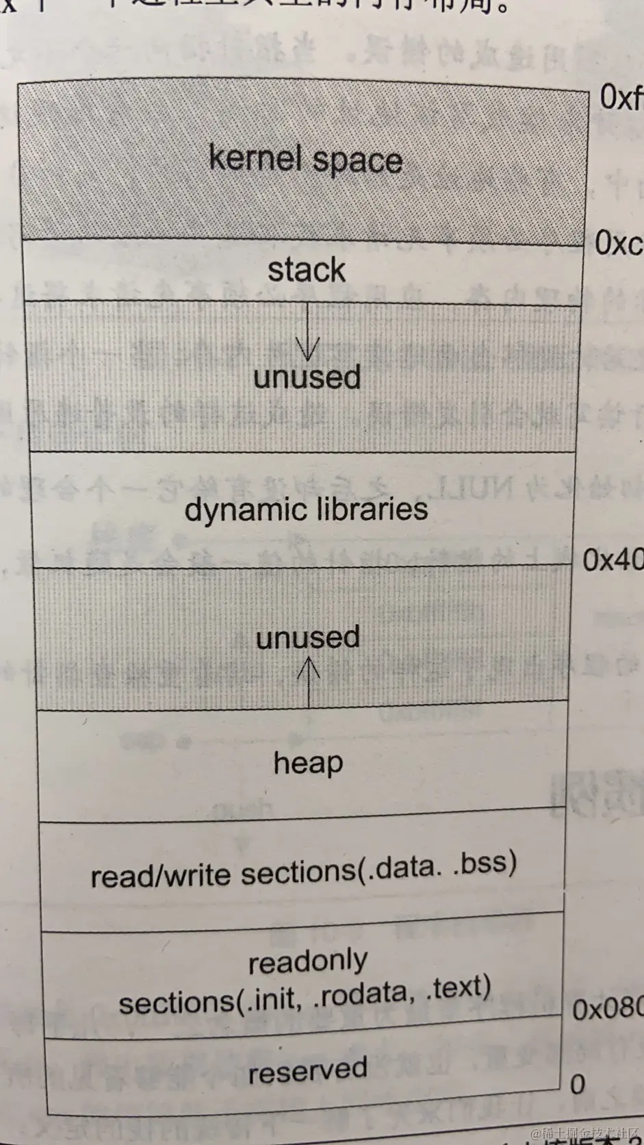 - 保留区:一般是为了保护内存禁止访问的区域,比如很低的地址
