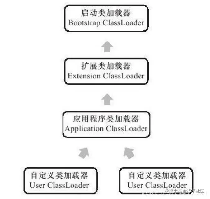 - Java虚拟机规定:所有派生于抽象类ClassLoader的类加载器都划分为自定义加载器